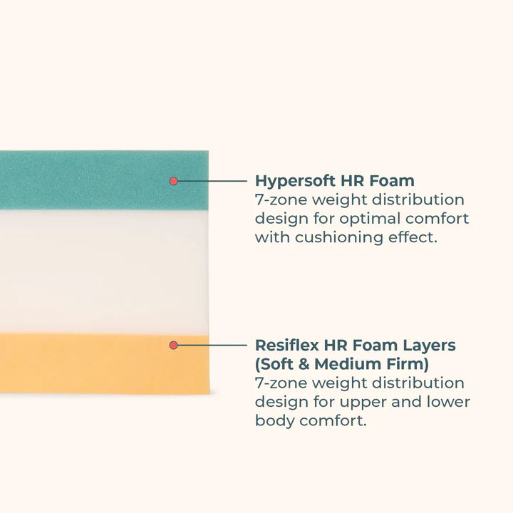 The UrbanBed Core Dual Support Mattress offers versatile comfort with two firmness options so you get firm and soft support to choose from. Crafted with HR Firm and HR Soft Resiflex layers, it provides tailored